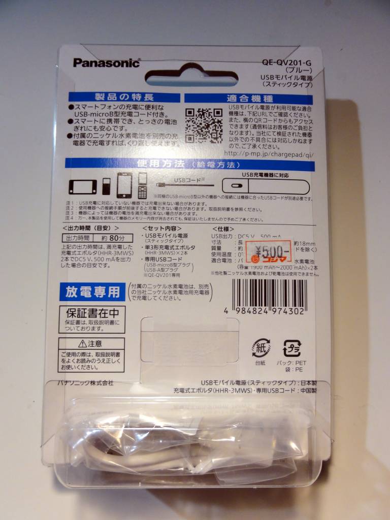エボルタのスマホ充電器「QE-QV201」レビュー