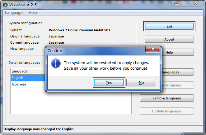 VistalizatorでWindows7を英語化する