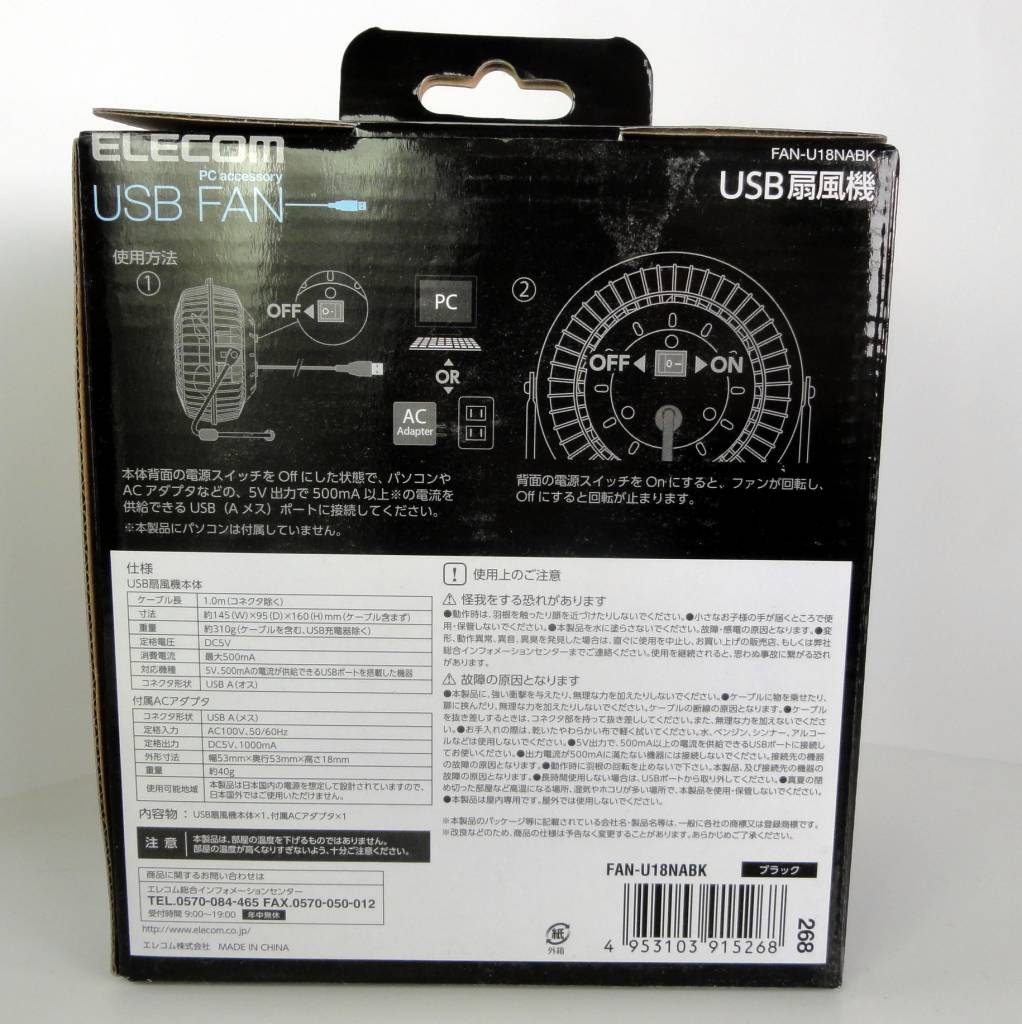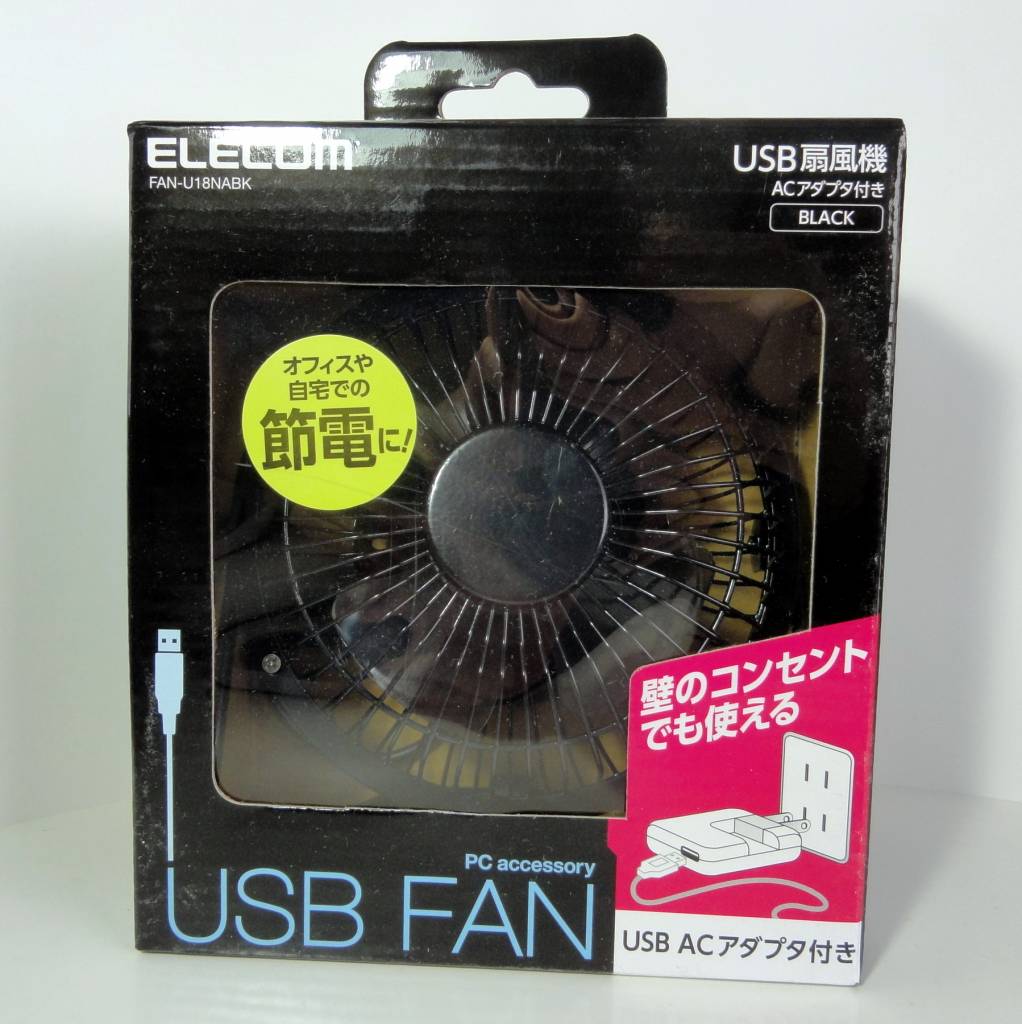 ちなみに,電源アダプターのないモデルが,ELECOM FAN-U18NBKです.