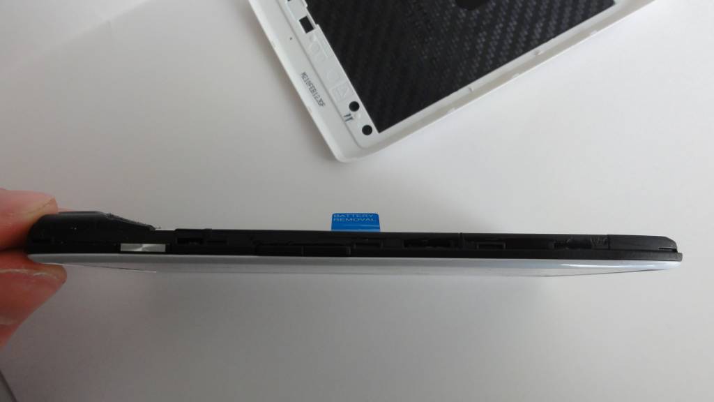 ドライヤーで粘着テープの接着を弱めると,IS12Mの裏カバーを外すことができます.
