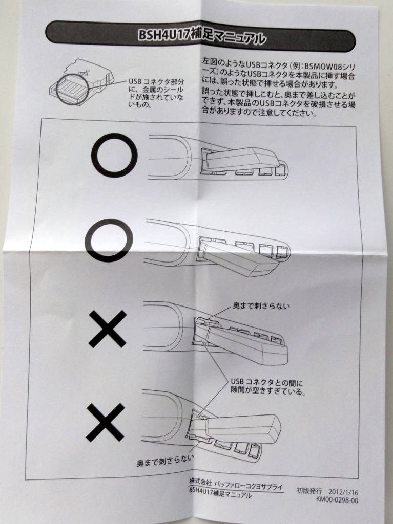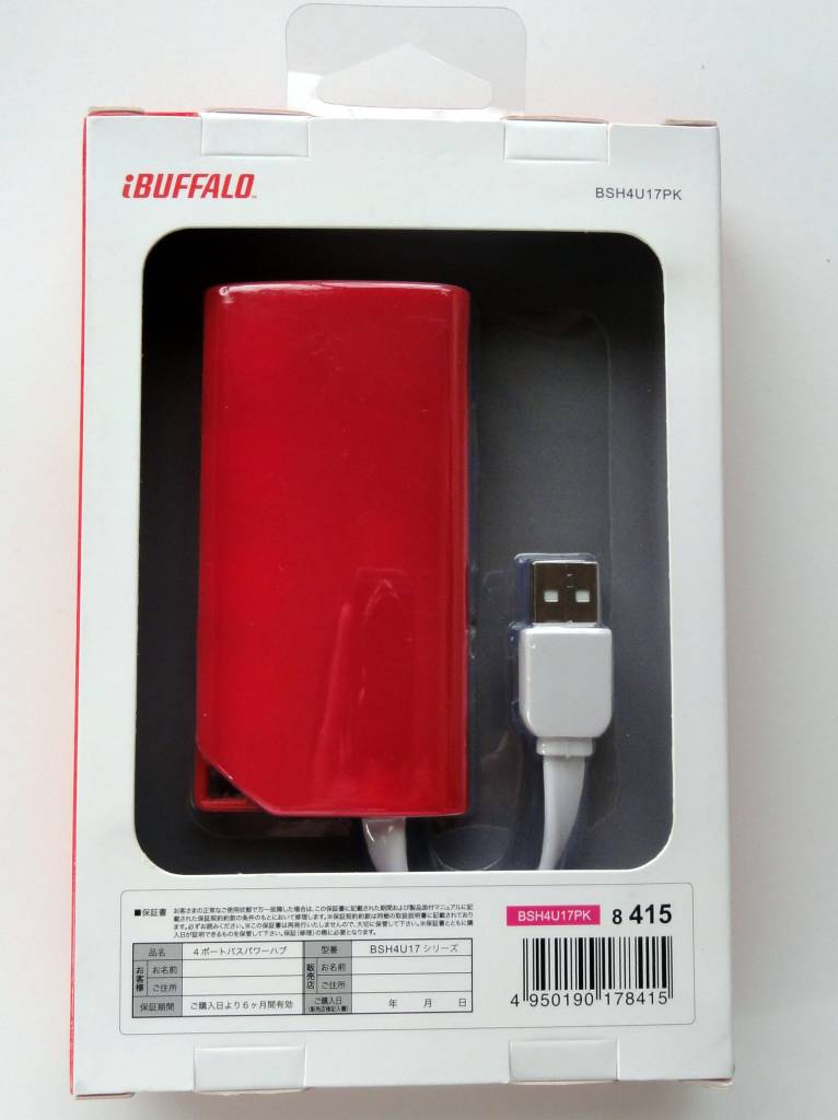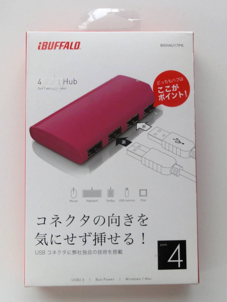 なお,安物や特殊なUSBハブだと端子のがたつきがある場合があります.ところが,このBSH4U17は,この安さ・機能性にもかかわらず,きちんとハマります.