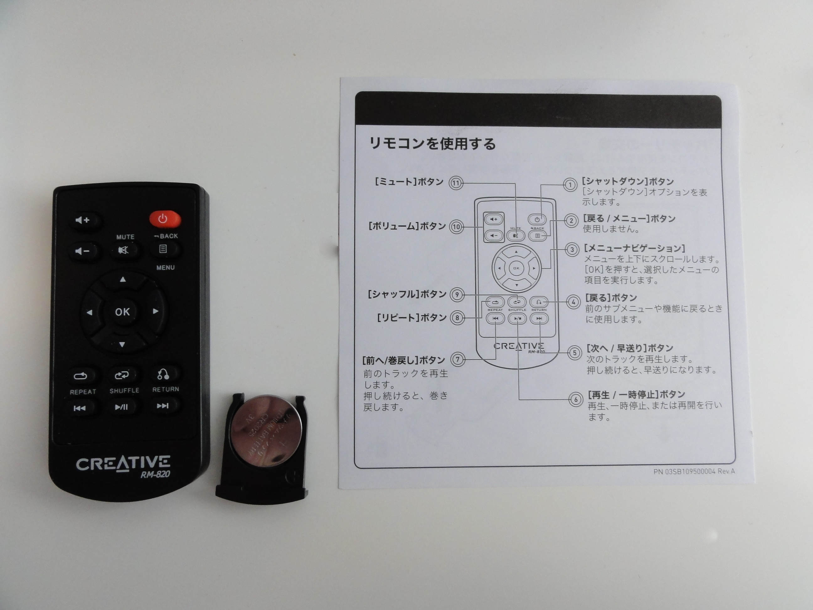 赤外線リモコンは、CR2025ボタン電池(付属)でiPodくらいの大きさです。