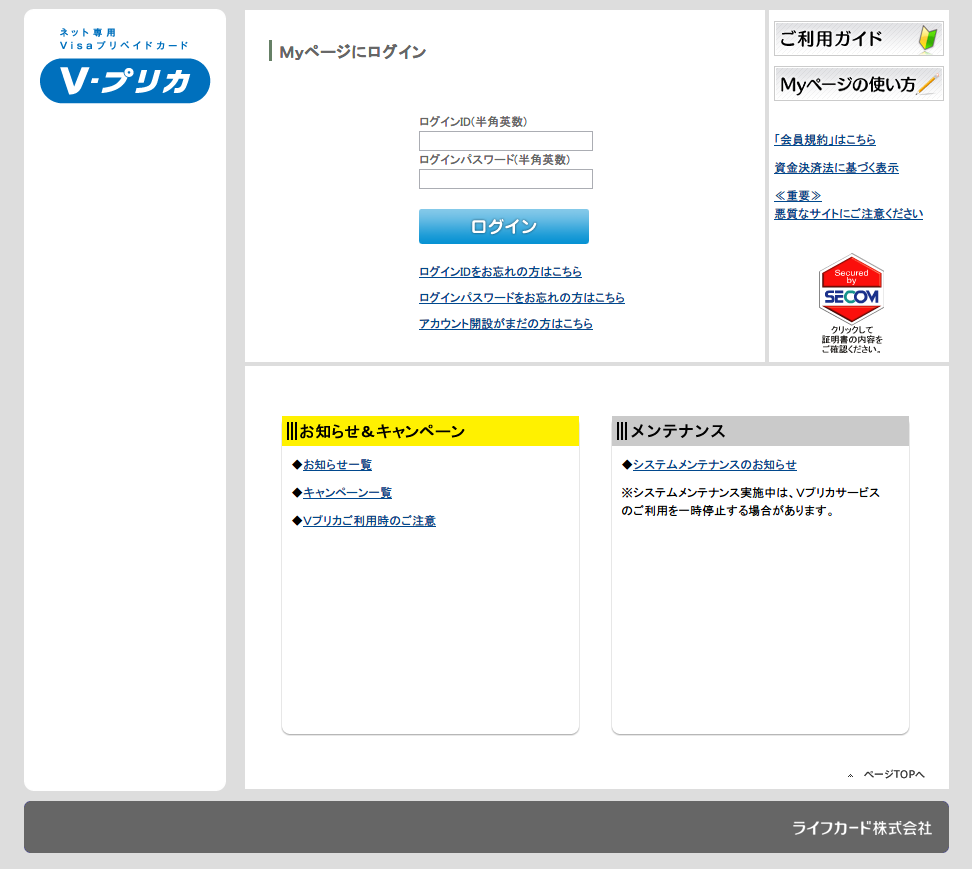 1. Vプリカ ログイン
