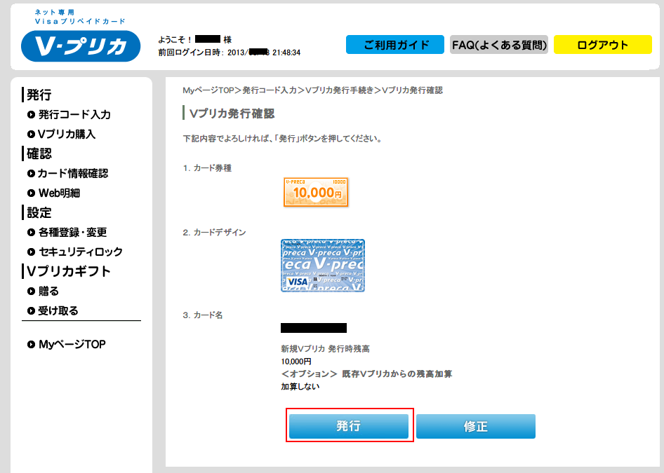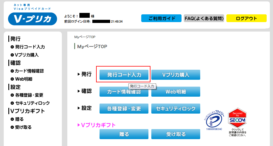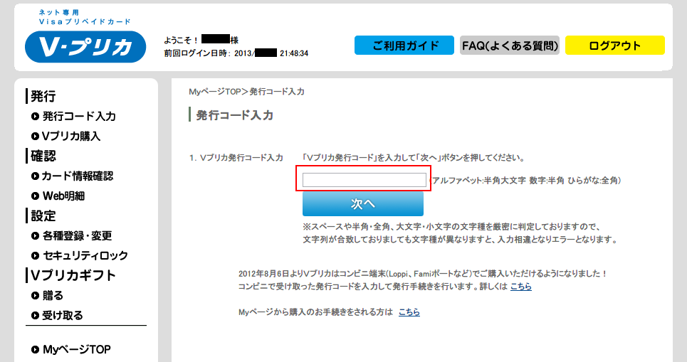 2. Vプリカ発行