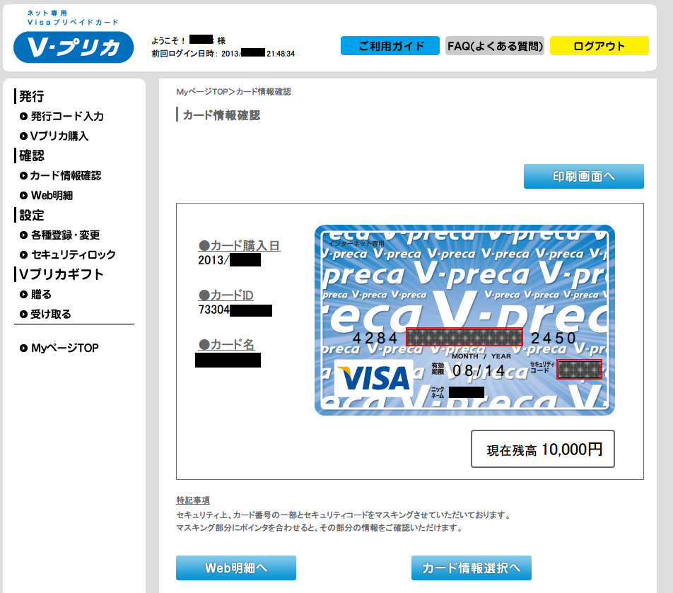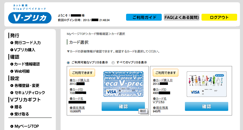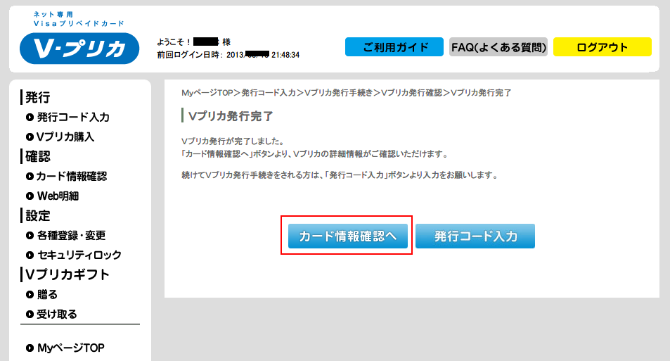 7. Vプリカ カード情報確認