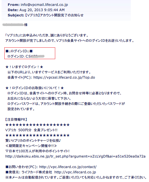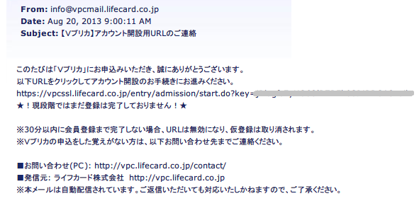 Vプリカ 登録メール 1