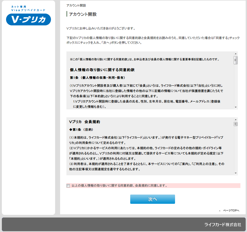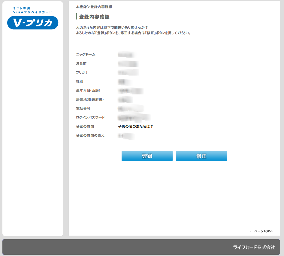 V-プリカ 登録画面2