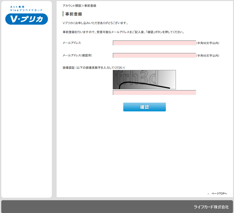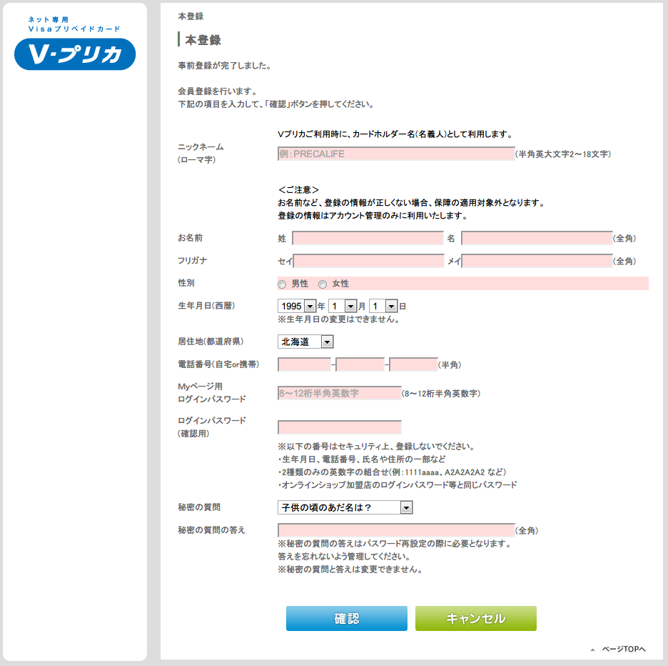 V-プリカ 登録画面1