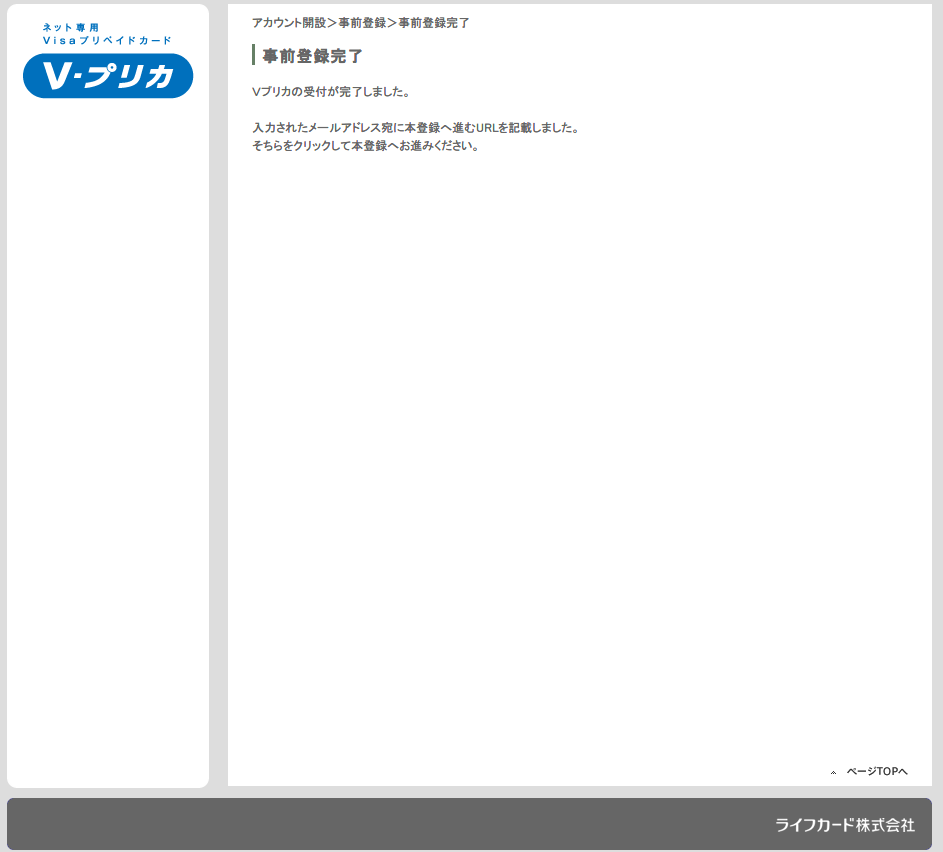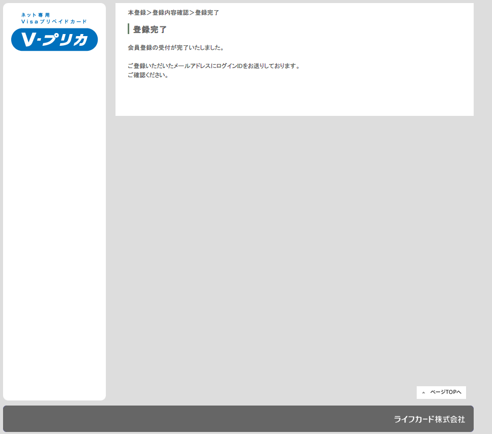 Vプリカ 登録完了通知メール 2