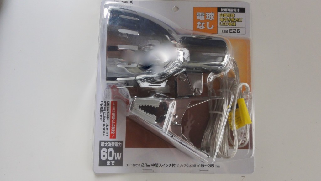 このヤザワ製のCLX605CHは,900円ほどのE26型クリップライトです.