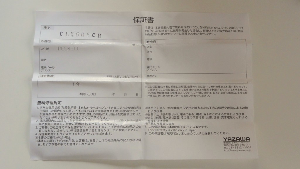 持ち込み修理の1年保証です.レシートと共に保管しておきましょう.