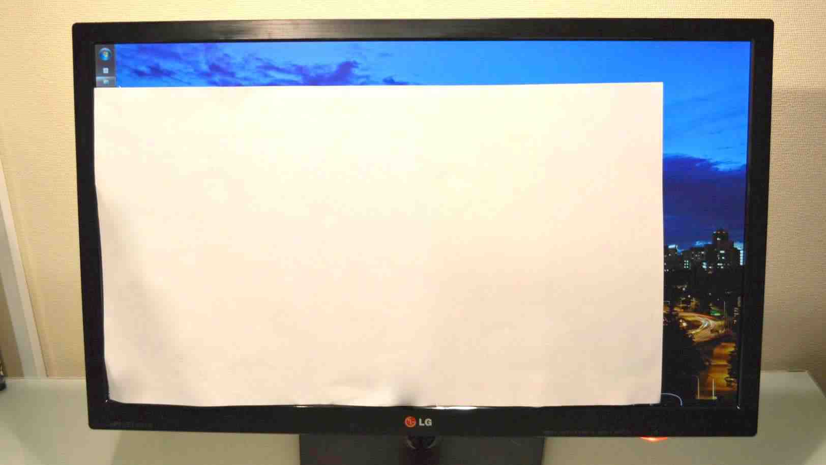 白い紙は、23.8インチ((LG 24EA53VQ-P))のサイズです。