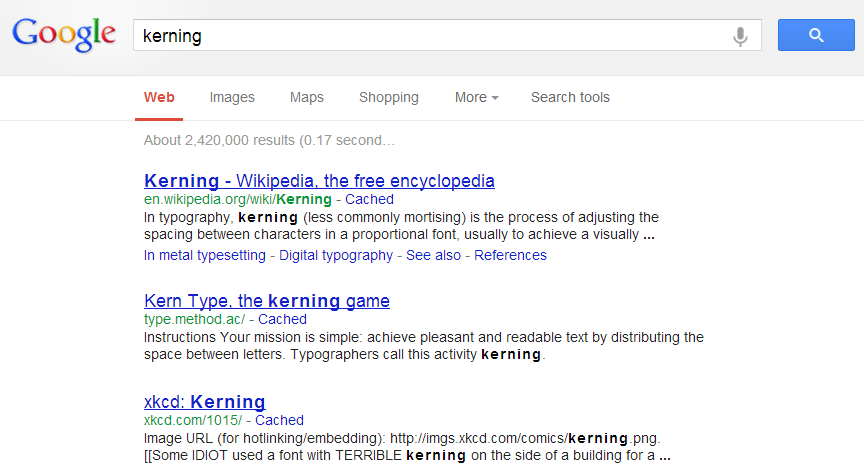 検索結果のkerningだけ、k e r n i n gしてやったぜε- (´ー`*)フッ