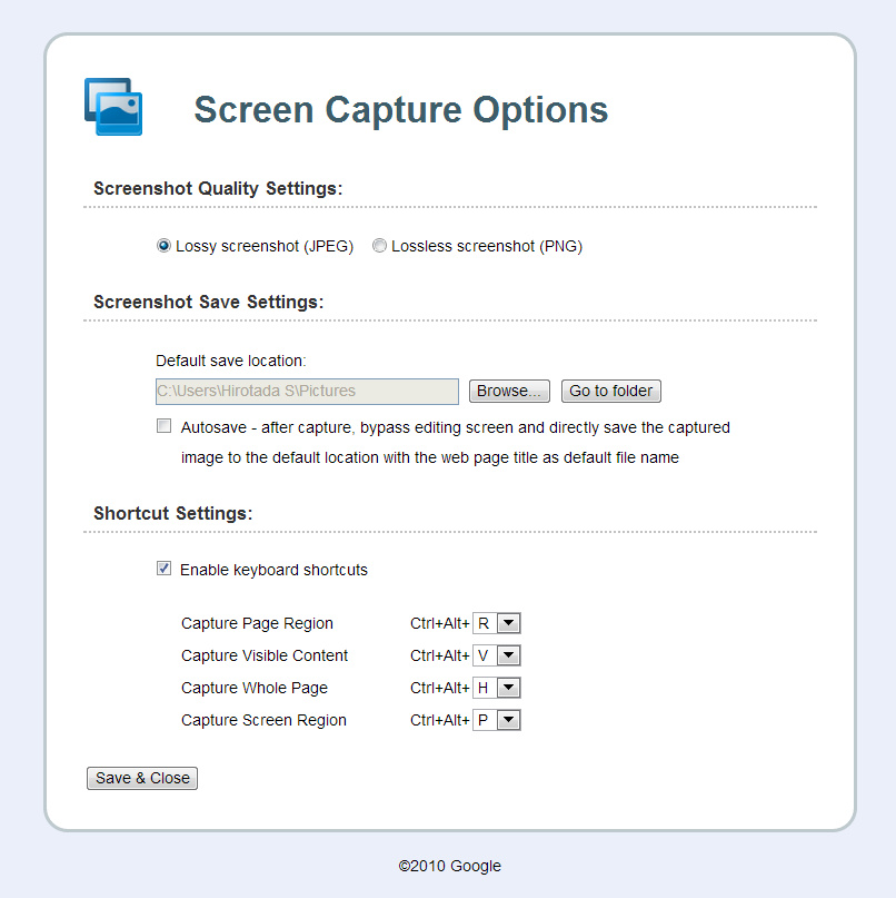 | Capture Screen Region | Ctrl+Alt+P | 見えている範囲(ブラウザのバーまで) |
