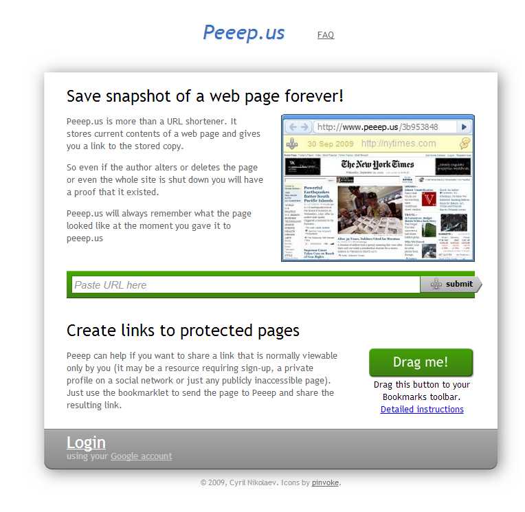 使い方は簡単、緑の枠内に保存したいWEBページのURLを貼り付けて、「submit」するだけ!
